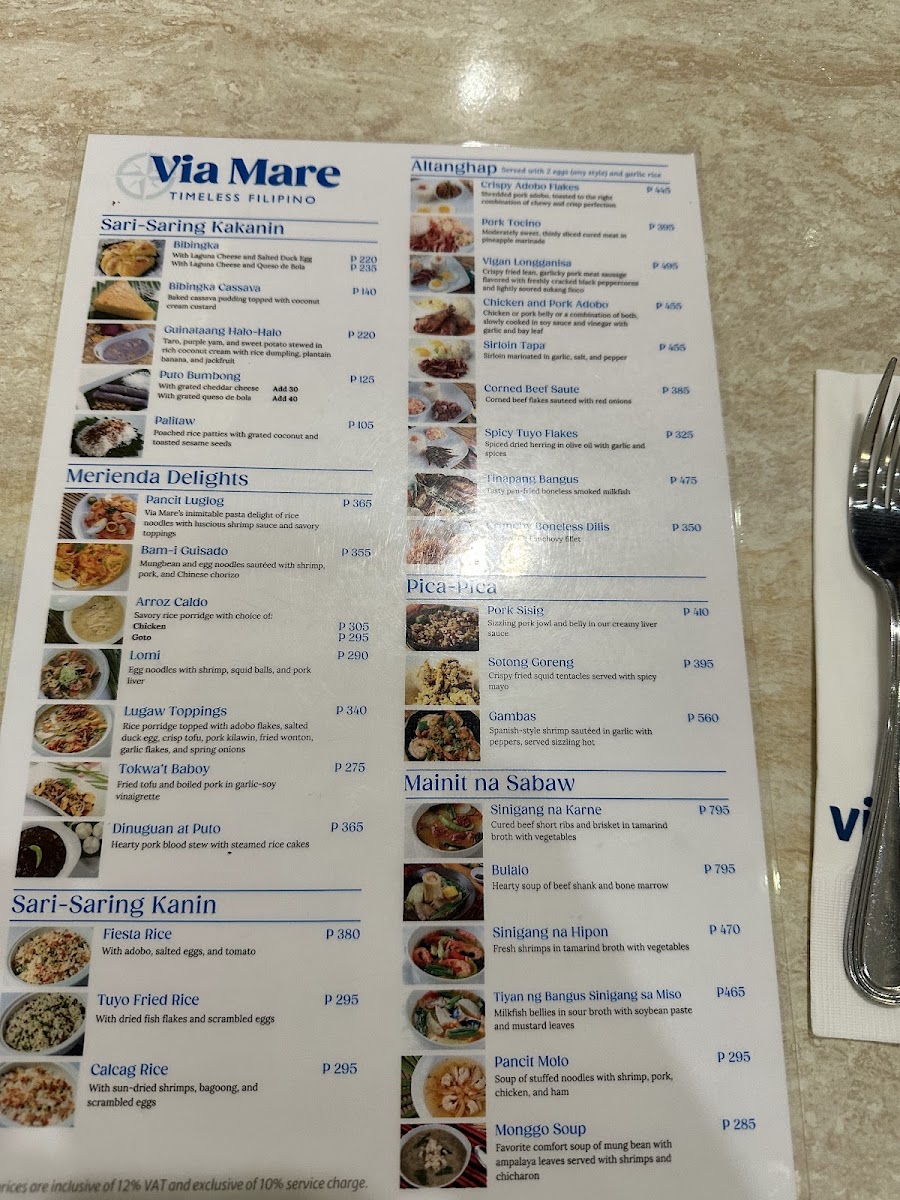 Cafe Via Mare has long been a favorite of locals and visitors alike for its signature dishes, each bursting with flavor and cultural significance. One of their highlights is the beloved Puto Bumbong, a traditional Filipino rice cake steamed in bamboo tubes, served with butter, brown sugar, and grated coconut. It's a festive dish, perfect for those who want to experience the taste of Filipino holiday traditions. For a savory treat, the Pancit Luglug is a top choice. This hearty noodle dish, topped with shrimp, chicharrón (crispy pork skin), and a rich shrimp sauce, embodies the Filipino love for noodles, offering a filling and flavorful meal.